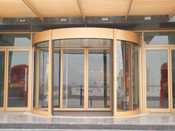三翼旋转门,它以造型简洁,美观及经济实用广泛用于写字楼、酒店、商场、机场等场所,同时兼顾建筑物进口通过性和环境隔离这两个完全相反的要求,有效地起到了防风、防尘、隔音的作用,从而改善入口附近的环境,若加上展箱装置,更增添了完美的装饰效果。